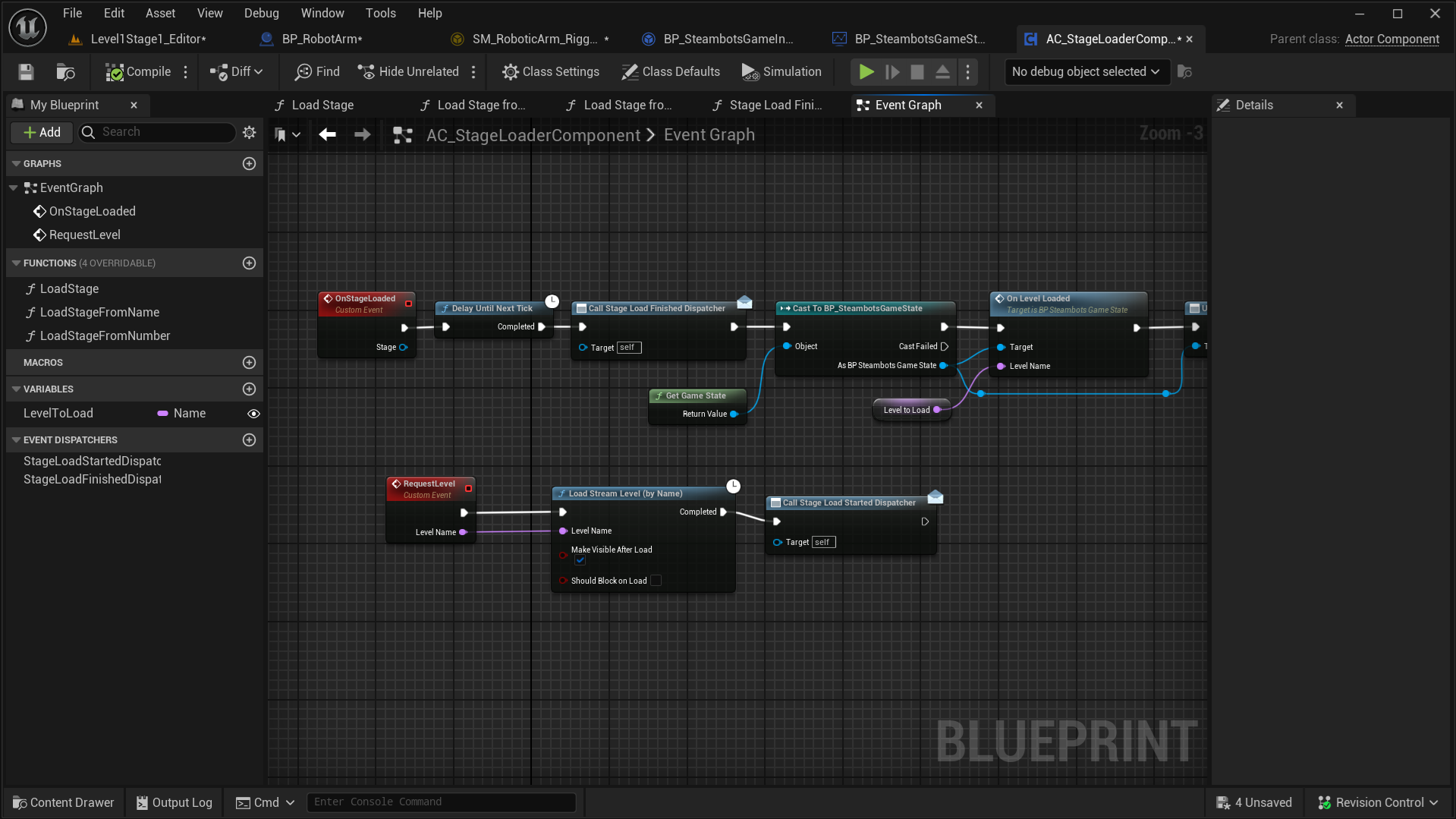 Blueprints snippet from the component that handles level streaming (left) and Unreal's IK control rig (right)