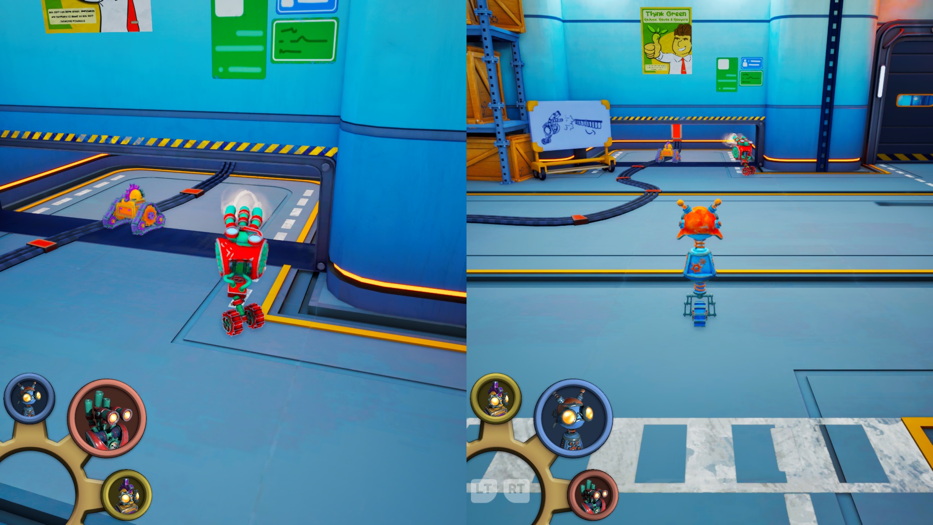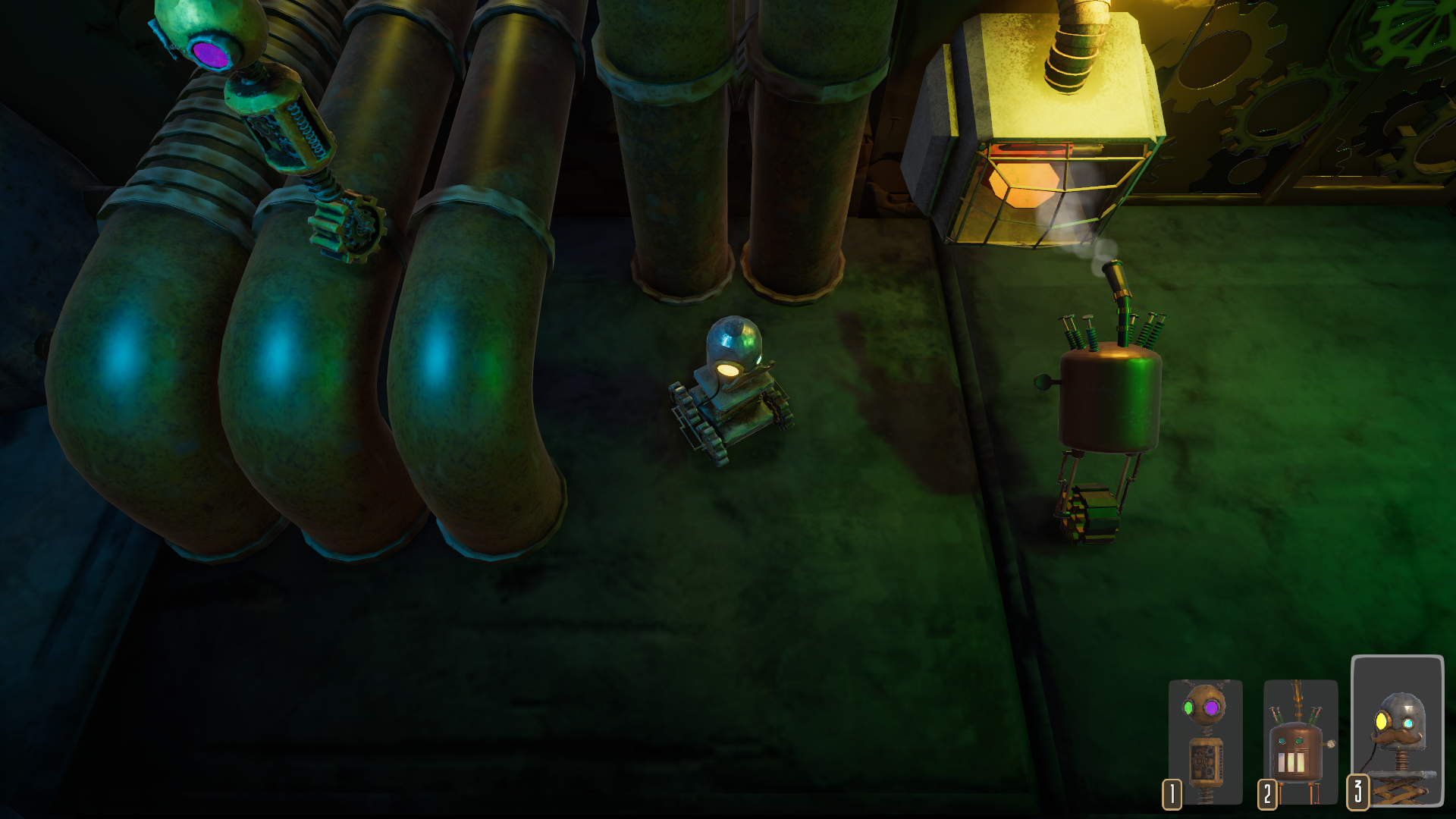 Steambots is a co-op puzzle platformer where you play as three faulty robots who have to escape their factory to avoid being scrapped, supporting up to three players either online or local splitscreen.